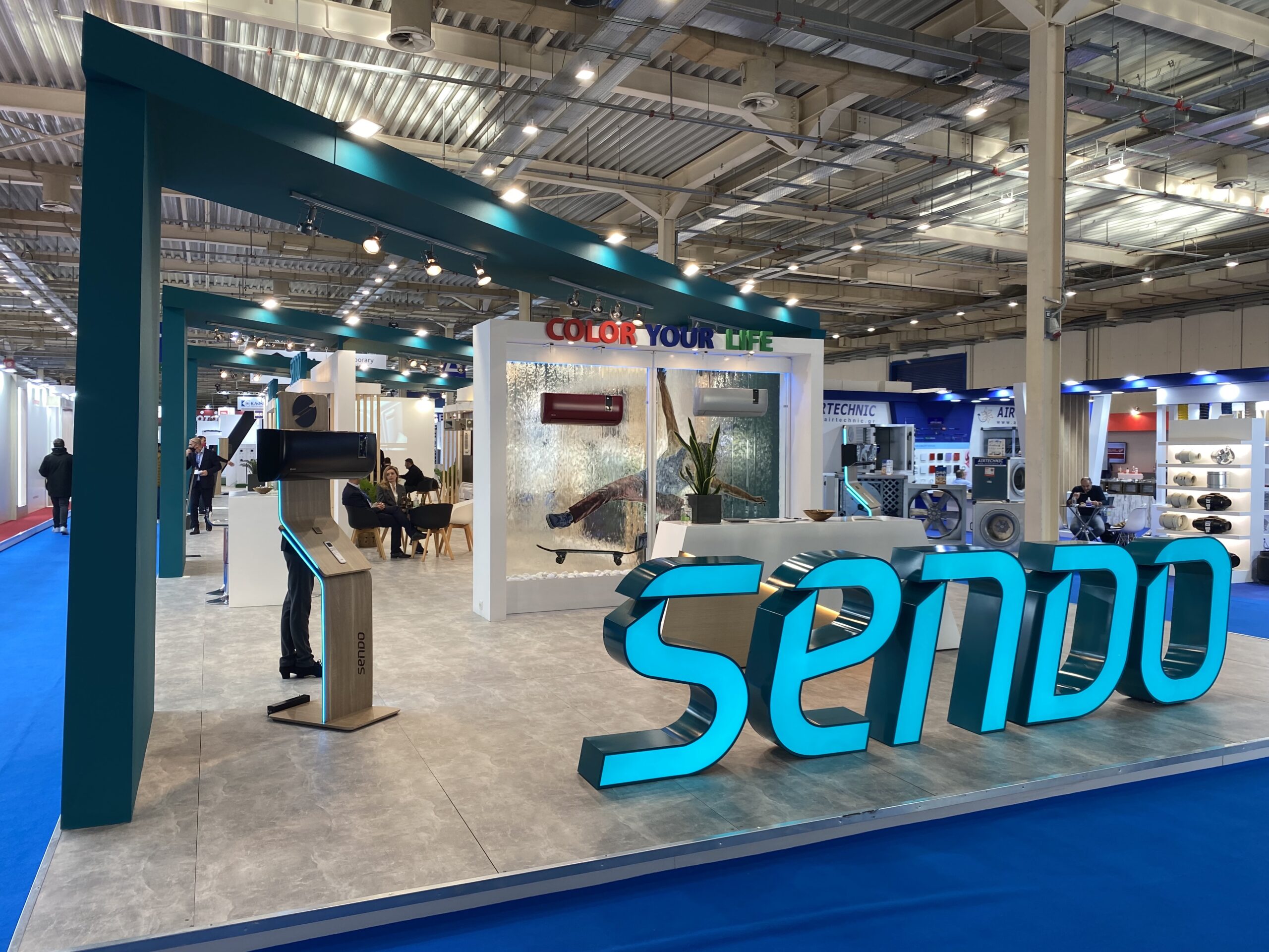 Το περίπτερο της SENDO σχεδιασμένο για να δημιουργήσει ένα ιδιαίτερο κλίμα στον χώρο της έκθεσης αποτέλεσε χώρο έλξης με τον εξαιρετικό σχεδιασμό ο οποίος ήταν προσανατολισμένος στο να προσφέρει μία ξεχωριστή εμπειρία στους επισκέπτες της δίνοντας έτσι άλλον αέρα στον κλάδο του κλιματισμού.