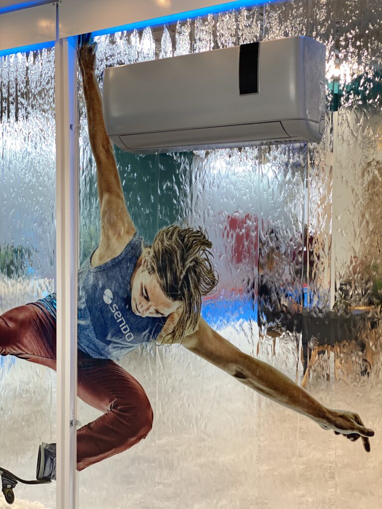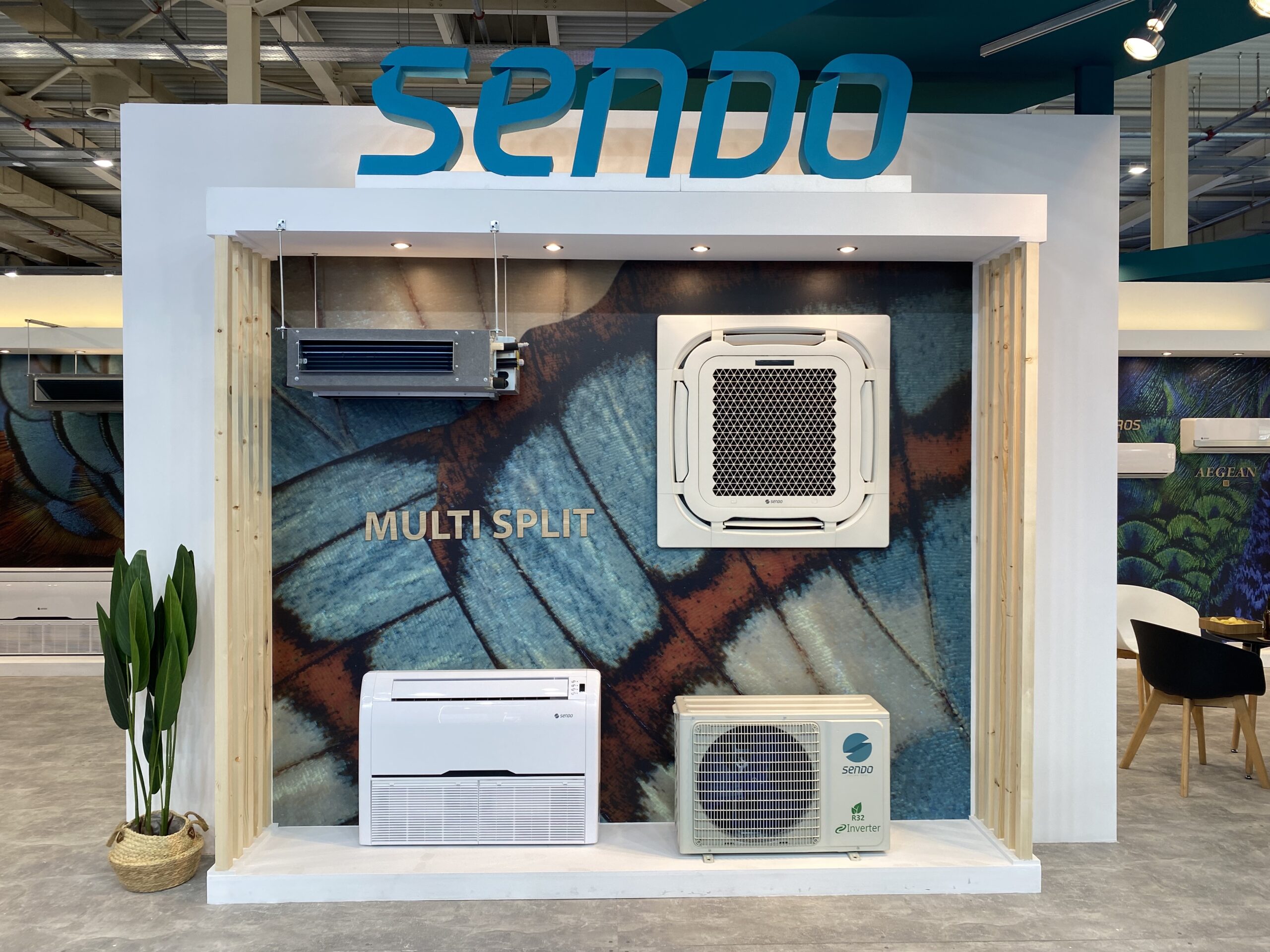 Το περίπτερο της SENDO σχεδιασμένο για να δημιουργήσει ένα ιδιαίτερο κλίμα στον χώρο της έκθεσης αποτέλεσε χώρο έλξης με τον εξαιρετικό σχεδιασμό ο οποίος ήταν προσανατολισμένος στο να προσφέρει μία ξεχωριστή εμπειρία στους επισκέπτες της δίνοντας έτσι άλλον αέρα στον κλάδο του κλιματισμού.